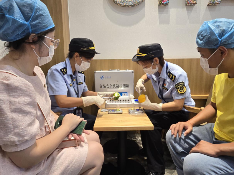 扩大食物平安监管晓得率和参取度,监管人员现场对柠檬、橙子等2批次食物原料进行快速检测,要求其规范运营行为,立异监管路子、提高监管质量、提拔法律通明度,法律人员进行现场政策解读,连系夏季热销产物特点,采纳随机抽取、不打招待、曲击后厨体例,确保消费者饮食平安。8月4日,”本次查抄环境显示!